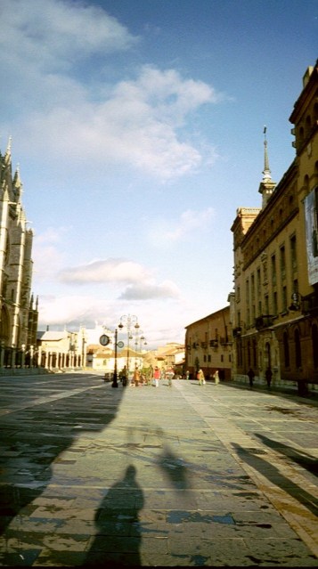 Und dann der Rucksack. Der Rucksack ist schwer. Auf der ersten Poststation an der man vorbei kommt lassen die meisten einen Teil ihres Gepäcks. So habe auch ich 2 Kg (!!!) postlagernd nach Santiago geschickt. 2 Kg mit Zeug, dass ich nicht brauche, jedenfalls nicht auf der Reise. Zwischendurch wirft man immer wieder Gepäck ab- hier einen Pulli, da ein Cape, dort dieses und jenes. Den meisten geht es jedenfalls so. Mein Rucksack war am Anfang voll und ca. 12 Kg schwer (mit Essen) und am Ende ziemlich leer und ca. 8 KG. Der Rücken hört auch tatsächlich irgendwann auf zu schmerzen- im Gegensatz zu den Füßen, die zumindest mir die ganze Zeit spätestens nach 15 Km an einem Tag anfingen weh zu tun. Dazu kommen Kleinigkeiten wie Hautirritationen von der Reibung und dem vielen Schweiß, Flohbisse, Wanzenbisse, Mückenstiche, Sonnenbrand und Blasen. Jutta meinte am ersten Abend zu mir, dass Blasen nicht vom vielen Laufen kommen, sondern aus dem Kopf – wenn man etwas nicht raus lässt, dann kriegt man Blasen. So war ich sehr stolz auf mich, auf der gesamten Reise nur 3 kleine Blasen gehabt zu haben und die alle am selben