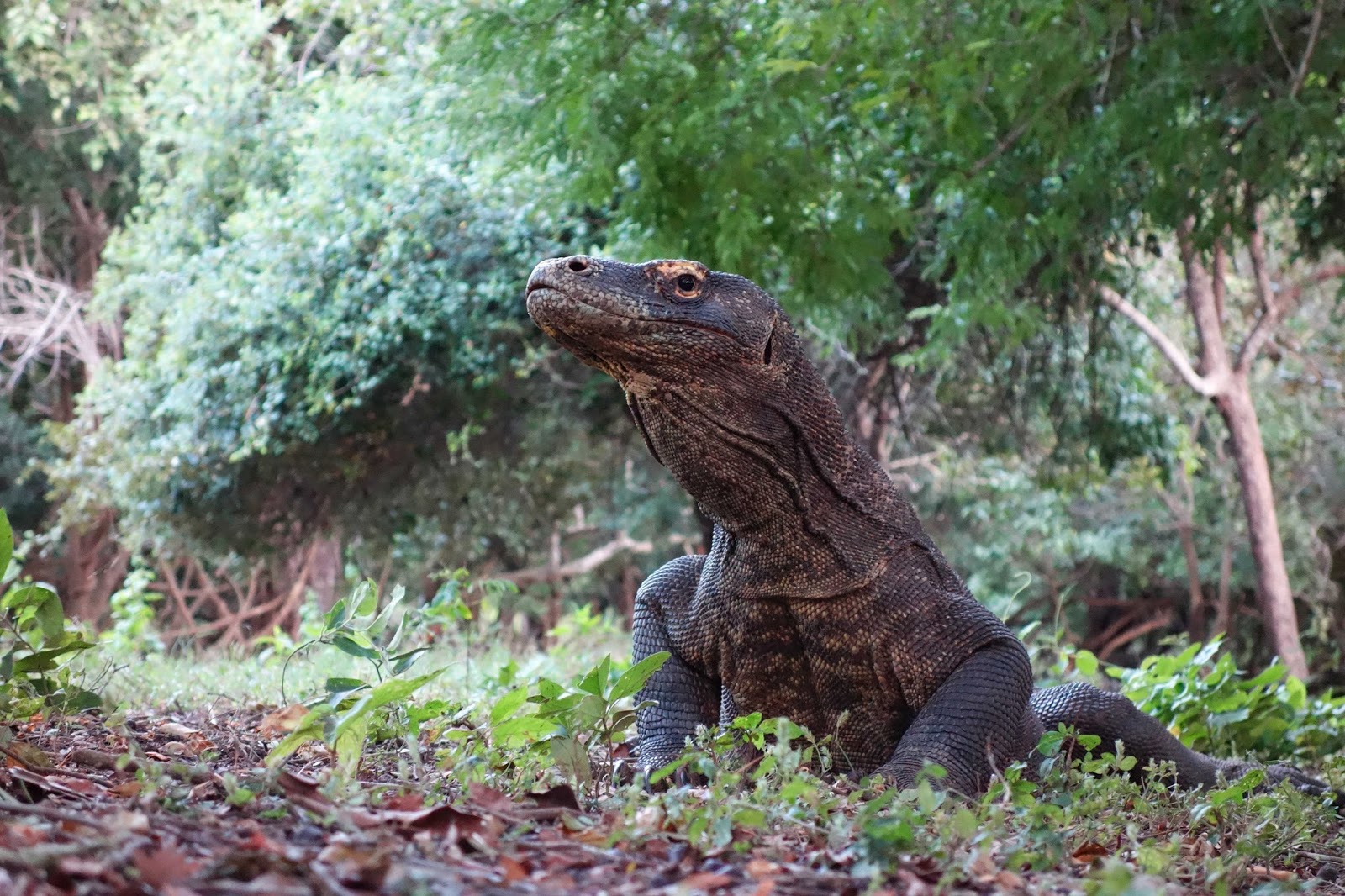 Dann gehts aber erstmal zu den Komodowaranen. Die größte fleischfressende lebende Echse wird bis zu drei Meter lang und wiegt 70 Kilo, manchmal auch mehr. Sie sind ein Überbleibsel aus der Dinosaurierzeit und so sehen sie auch aus.