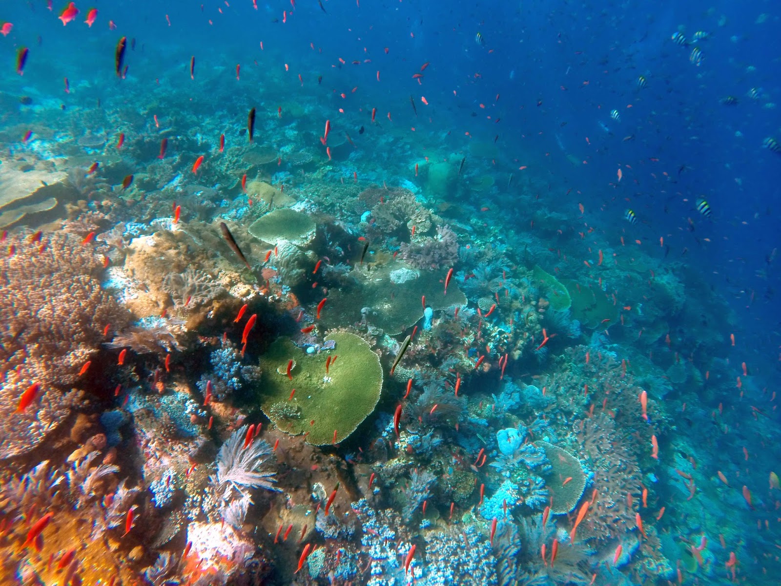 Die kleinen, frisch geschlüpften Warane verstecken sich in den Bäumen vor ihren Eltern, die sie sonst fressen (!). Das wirft bei mir die Frage auf, ob die niedlichen Kleinen sich vielleicht von oben auf einen stürzen um einen Haps aus einer Schulter zu nehmen. Aber der Führer versichert mir, das würde quasi nie passieren und der letzte Mensch sei in den 80igern von den Komodowaranen gefressen worden und da weiß man es auch nicht sicher, denn er ist einfach verschwunden. (Ich bin mir sicher die Drachen haben damit zu tun.) Leider kann man die kleinen Warane, die bestimmt süß und völlig unschuldig aussehen, auch nicht in den Bäumen sehen, denn sie verstecken sich gut. Nach einem kurzen Rundgang über die Insel bin ich froh wieder auf dem Boot zu sein und in den nächsten Tagen erstmal überwiegend planktonfressenden Fischen zu begegnen.![]() |