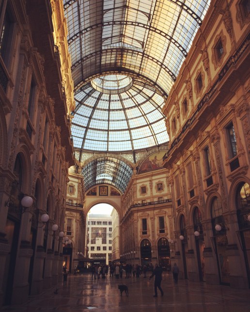 Derart cremeröllchengestärkt setzte ich meinen Weg fort und kam zufällig durch das bezaubernd, überdachte Einkaufsquartier „Galeria Vittorio Emmanuele“, mit Marmornen, gemusterten Fußböden und hohen Torbögen. Magnifizi! Die Ladenüberschriften lesen sich wie das who-is-who der Modebranche – Prada, Armani und Gucci haben ihre Mütterhäuser in Mailand. Statt zu überteuerten Portemonnaies zog es mich allerdings erstmal in den Untergrund. In der Metrostation am Mailänder Dom gibt es Galerierestkarten für die Scala zu erwerben, das wollte ich mir nicht entgehen lassen. Ich glaube sie verstecken den Ticketschalter extra gut, damit nicht zu viele Touristen ihn finden. Aber anders als z.Bsp bei der MET musste ich hier nicht zweieinhalb Stunden anstehen um am Ende so weit hinten zu stehen, dass man kaum die Opernsänger sieht. Nein, ich konnte direkt eine Karte erwerben und dies sogar mit Sitzplatz. Fantastico!