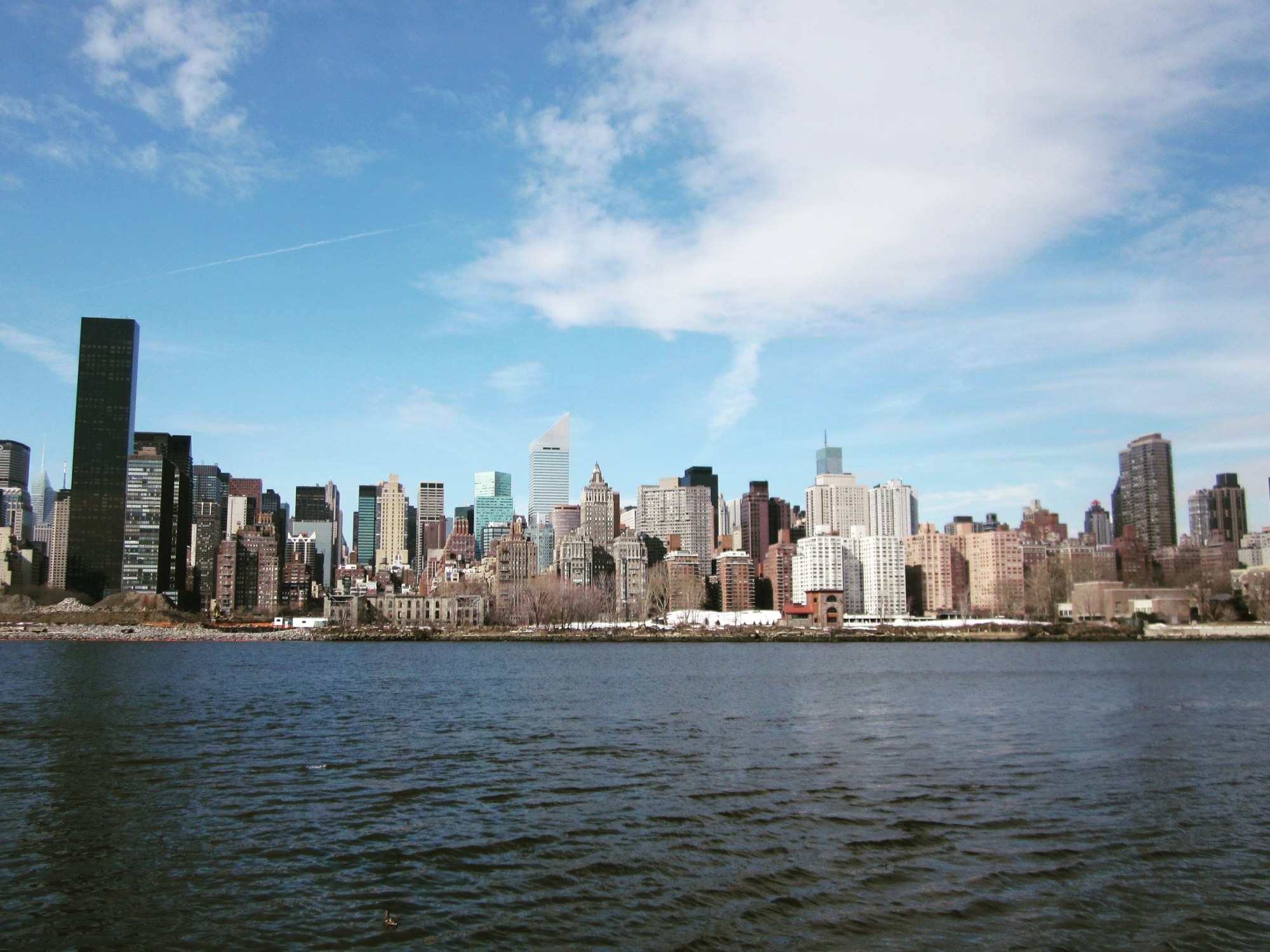 Am Sonntag erwachte ich dann nach nicht allzu viel Schlaf wie aus dem Koma und schwang mich schon bald in die Subway um zur Grand Central Station zu fahren. Allerdings hielt die Bahn mal wieder nicht dort wo ich hin wollte und so landete ich in Queens. Wo ich einmal da war, konnte ich auch aussteigen, also bin ich ein bisschen in Queens rum gelaufen, denn das Wetter war schön, und der Kaffee to go kostet anders als auf der anderen Uferseite nur 1,25 $. Als ich eine Brücke entdeckte (Queensboro Brigde, wie sich rausstellte) lief ich darauf zu und so kam ich ans Ufer mit einem Wahnsinnsblick auf die Skyline von Manhatten. Ich bin zwar auf der Terrasse von irgendeinem sehr dubios ausschauenden, aber geschlossenen Restaurant rumgelaufen (von dort konnte man einfach bessere Fotos machen), aber ich wurde ja nicht erwischt und wenn ja hätte ich so getan, als könne ich kein Englisch. Mein kleiner Ausflug nach Queens hatte sich also gelohnt und ich bin dann doch irgendwann bei Grand Central angekommen. Grand Central ist ein riesiges, sehr schönes, sehr pompöses Gebäude, das war es dann aber auch. Also weiter zum MET. Dort kann man zahlen was man will, für Studenten werden aber 10 $ empfohlen. Ich war davon auf die Schnelle etwas überfordert (wie ich kann zahlen wieviel ich will??) daher habe ich 8 Dollar bezahlt und das finde ich fair, denn ich war sowieso nur bei der modernen Kunst. Dort habe ich zum ersten Mal echte Picassos, echte Dalis und echte Chagalls gesehen. Abgefahren schöne Bilder hängen dort und die haben sogar einige von Giacomettis Figuren, darunter eine Katze (mir war nicht bekannt, dass der auch Tiere gemacht hat) und einige sehr bekannte Bilder. Das MET ist riesig, allein für die moderne Kunst habe ich gut 2 Stunden gebraucht und ich habe nicht mal jedes Bild genau angeschaut. Dafür habe ich aber fotografiert! Ja, ein Museum, für das man im Notfall keinen Eintritt zahlt UND wo man fotografieren kann! Unvorstellbar. Das ist dann wohl wirklich das Land der unbegrenzten Möglichkeiten, die Möglichkeit mittellosen kostenlose Bildung zu vermitteln und das ganze so zu gestalten, dass jeder sein Erlebnis mit nach Hause nehmen kann, finde ich toll. Das MET war aber so groß, dass ich all den anderen Abteilungen „Ägypten, Rom, Byzanz…..“ keine Beachtung geschenkt habe, ich bin nur durchgelaufen. Angeschaut habe ich mir noch eine temporäre Ausstellung über Gitarrenhersteller. Obwohl ich mir nichts aus Gitarren mache, war die Ausstellung geradezu mitreißend, solchen Gitarren und anderen Instrumente wie die, die dort hergestellt waren habe ich noch nie gesehen. Dann war es jedoch auch schon Zeit zu gehen: Um 6:40 ging mein Bus. Auf dem Heimweg bin ich noch kurz durch den Central Park spaziert. Selbst mit dem Schnee war das sehr schön und die Hochhäuser die hinter dem „Wald“ aufragen, gaben auch wieder ein schönes Fotomotiv ab. Der Rückweg war durch enorme Verspätung des Megabusses etwas länger als geplant, aber die Skyline von Philly hat mich dafür entschädigt. Und ich wusste, das würde nicht mein letzter Besuch in New York gewesen sein.